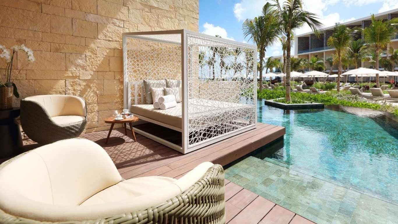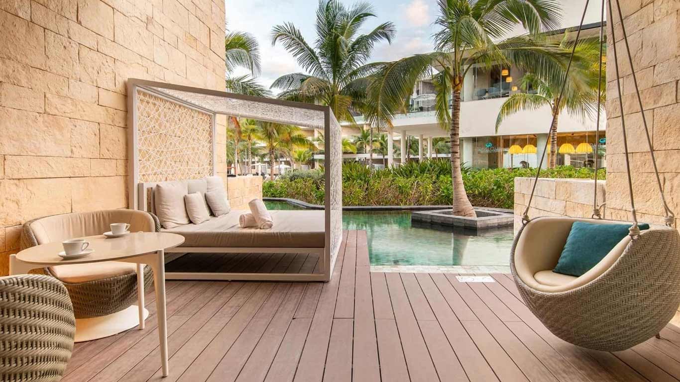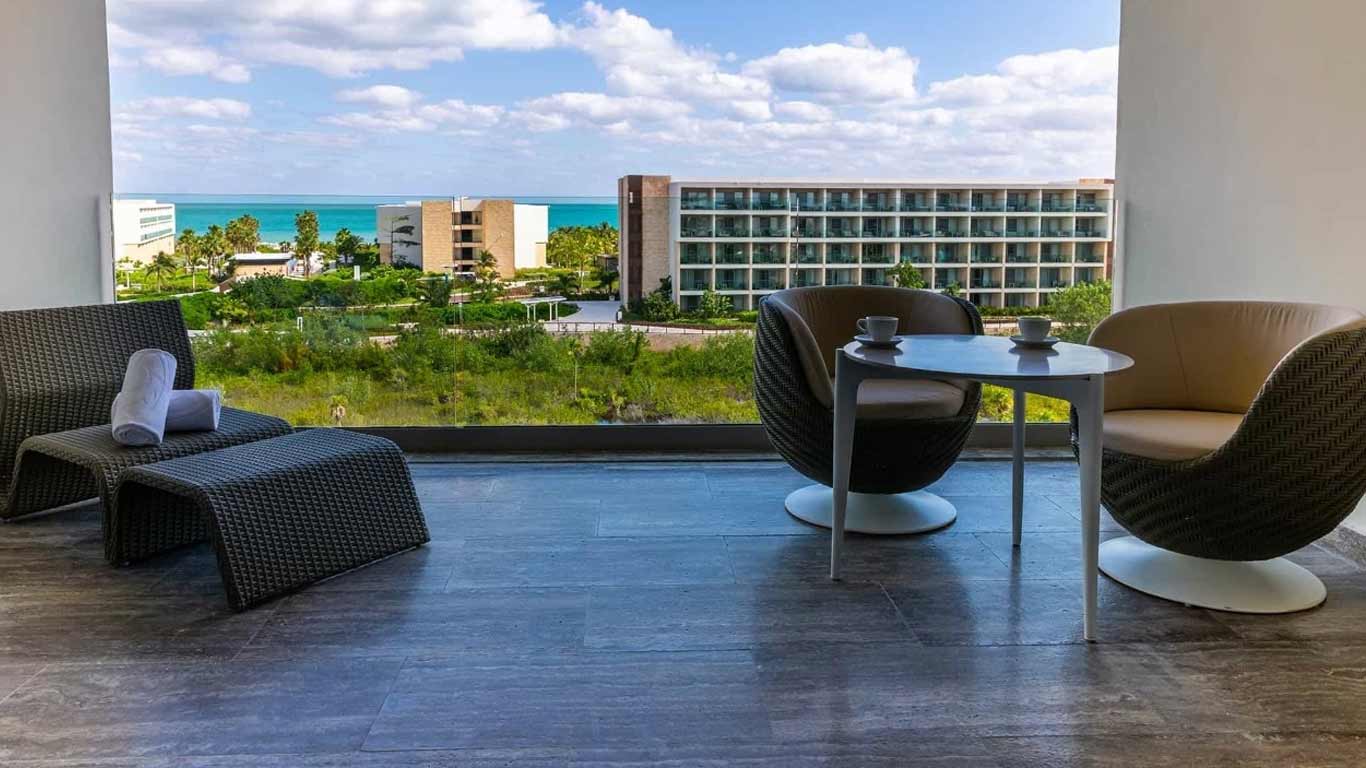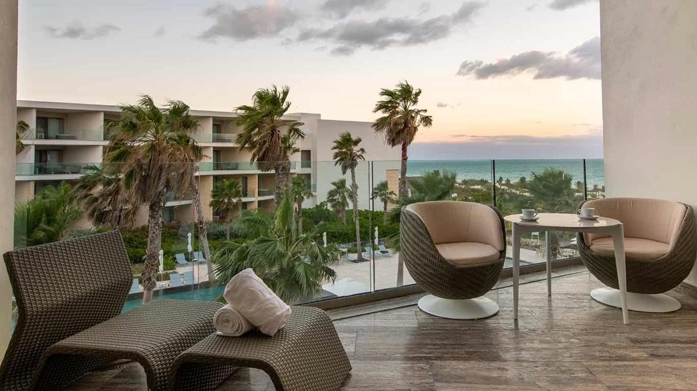 The Poolside Ocean View Junior Suite at Grand Palladium Costa Mujeres offers everything you need during your vacation at Grand Palladium Costa Mujeres Resort & Spa: a king size bed or two double beds, combined living area with sofa bed, hydro-massage bath, 50” flat-screen TV, perfectly located near the pool, with views of the Caribbean from the furnished balcony.