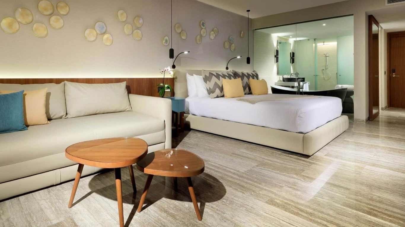 The Family Selection Junior Suite Beachfront at Grand Palladium Costa Mujeresis the perfect room to spend your family holidays in Costa Mujeres. This room measures 62 m2 and is near the beach with views of the mangrove forests. Includes a king size bed or two double beds, sofa bed, furnished balcony and hydro-massage bath. VIP services include 24-hour check-in and check-out, Family Boss facilities for children and à la carte cuisine.