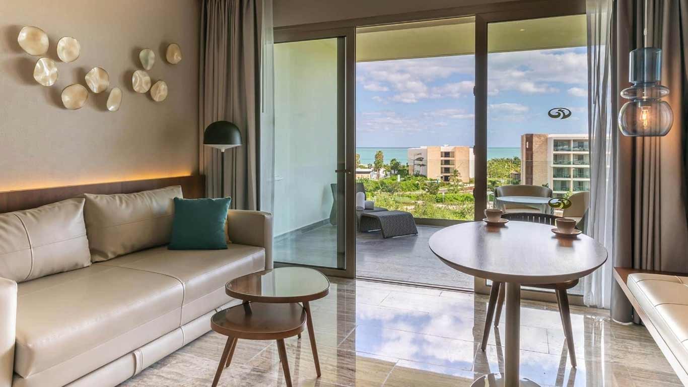 The Poolside Ocean View Junior Suite at Grand Palladium Costa Mujeres offers everything you need during your vacation at Grand Palladium Costa Mujeres Resort & Spa: a king size bed or two double beds, combined living area with sofa bed, hydro-massage bath, 50” flat-screen TV, perfectly located near the pool, with views of the Caribbean from the furnished balcony.
